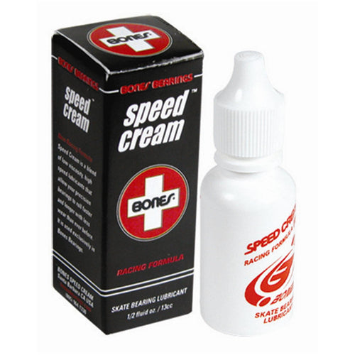 Bones Speed Cream? is a high temperature, low viscosity synthetic skate lubricant specially formulated by Bones to reduce friction, and provide a durable micro film of lubricant to protect against corrosion. We have found this lubricant to be superior to Teflon® based lubricants in skate environments. Speed Cream? makes your bearings faster and is very long lasting.