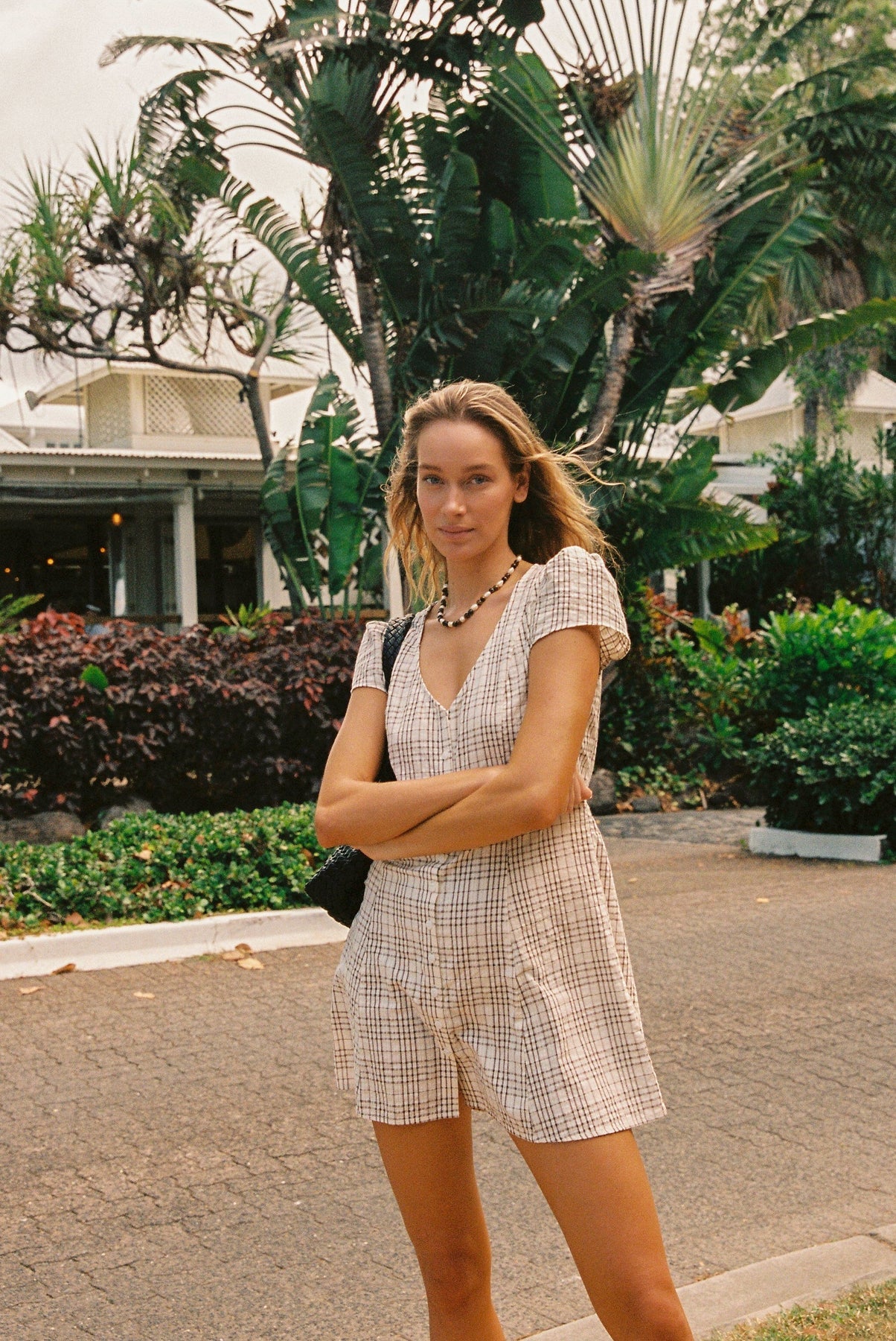 Rhythm Rumi Check Cap Sleeve Mini Dress