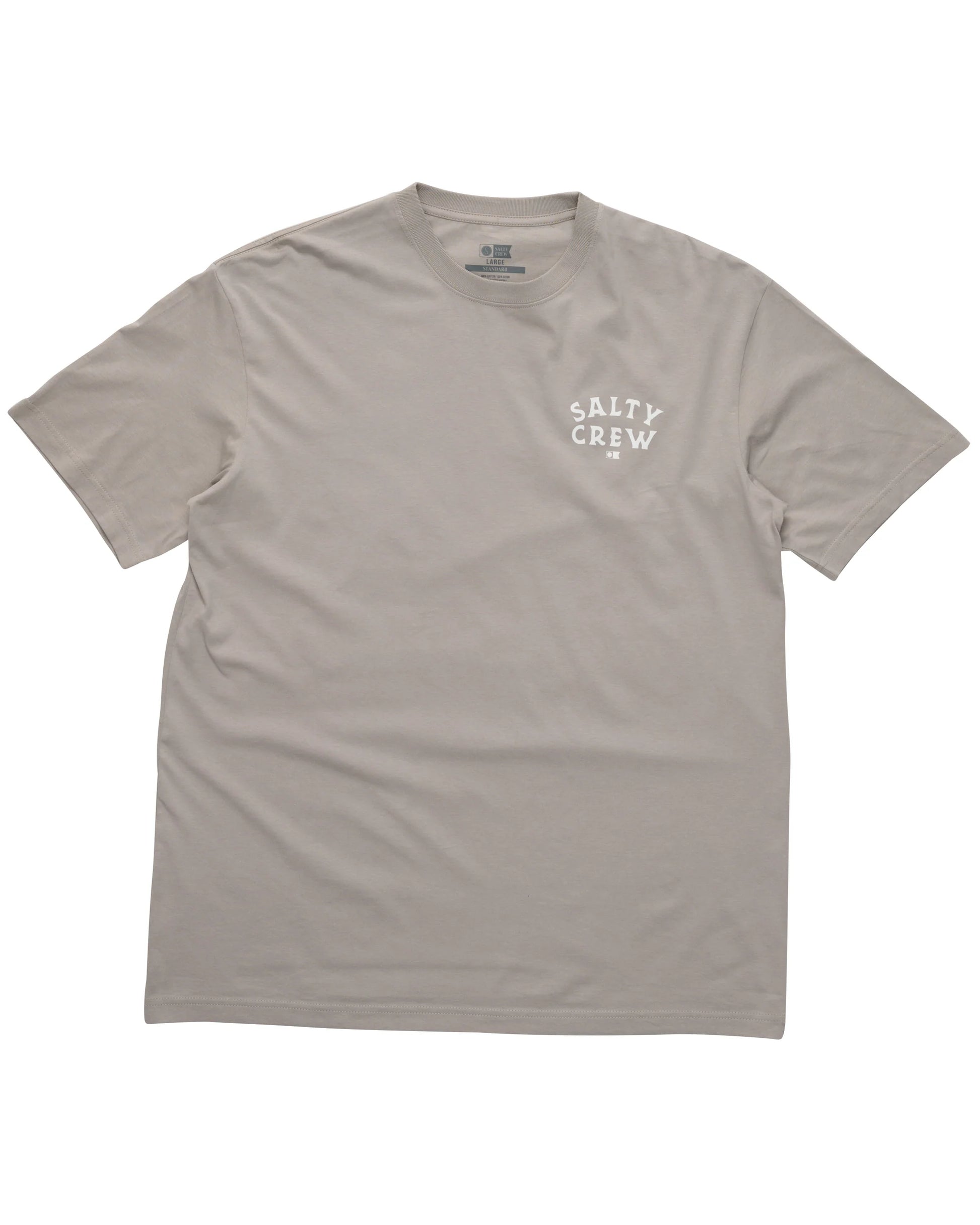 The Ulua Classic SS Tee in Stone Grey is crafted from soft-spun cotton jersey, weighing 180gsm. It features a Salty Crew clamp label at the sleeve hem and is finished with digital-printed designs on both the front and back for a dynamic, stylish look.